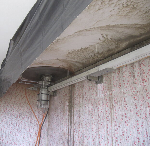 Als sie das 1. Mal angerückt sind, haben sie die dicke Mauer und einige Schnitte für die neuen Fenster und die Balkontüre gemacht.