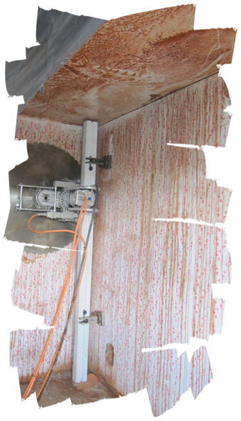 Wir mussten eine Zwischenwand aus Klinkersteinen mit einer Stärke von ca. 43 cm heraus brechen dazu haben wir die Mauer in 3 Teile geteilt, um das Herausbrechen zu erleichtern.