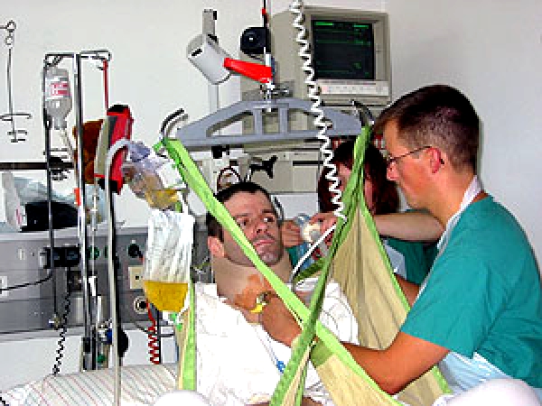 So sieht es aus wenn man nach lange Zeit mobil gemacht wird und in einen Rollstuhl gesetzt wird.