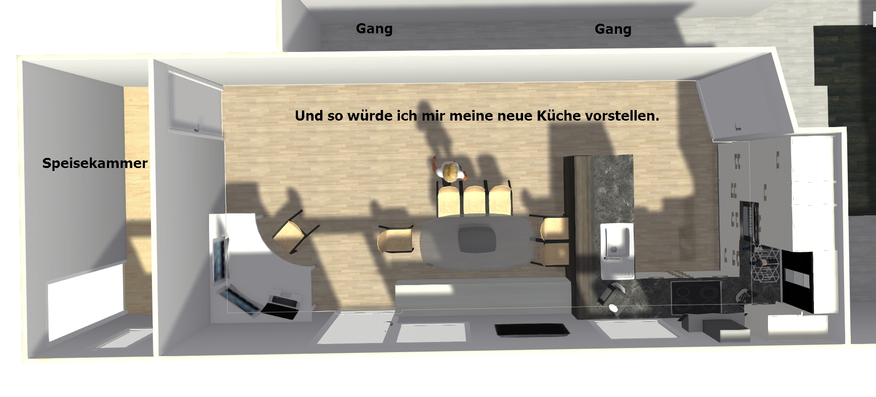 Unten könnt ihr sehen, wie ich mir meinen neuen Lebensraum Küche vorstelle.