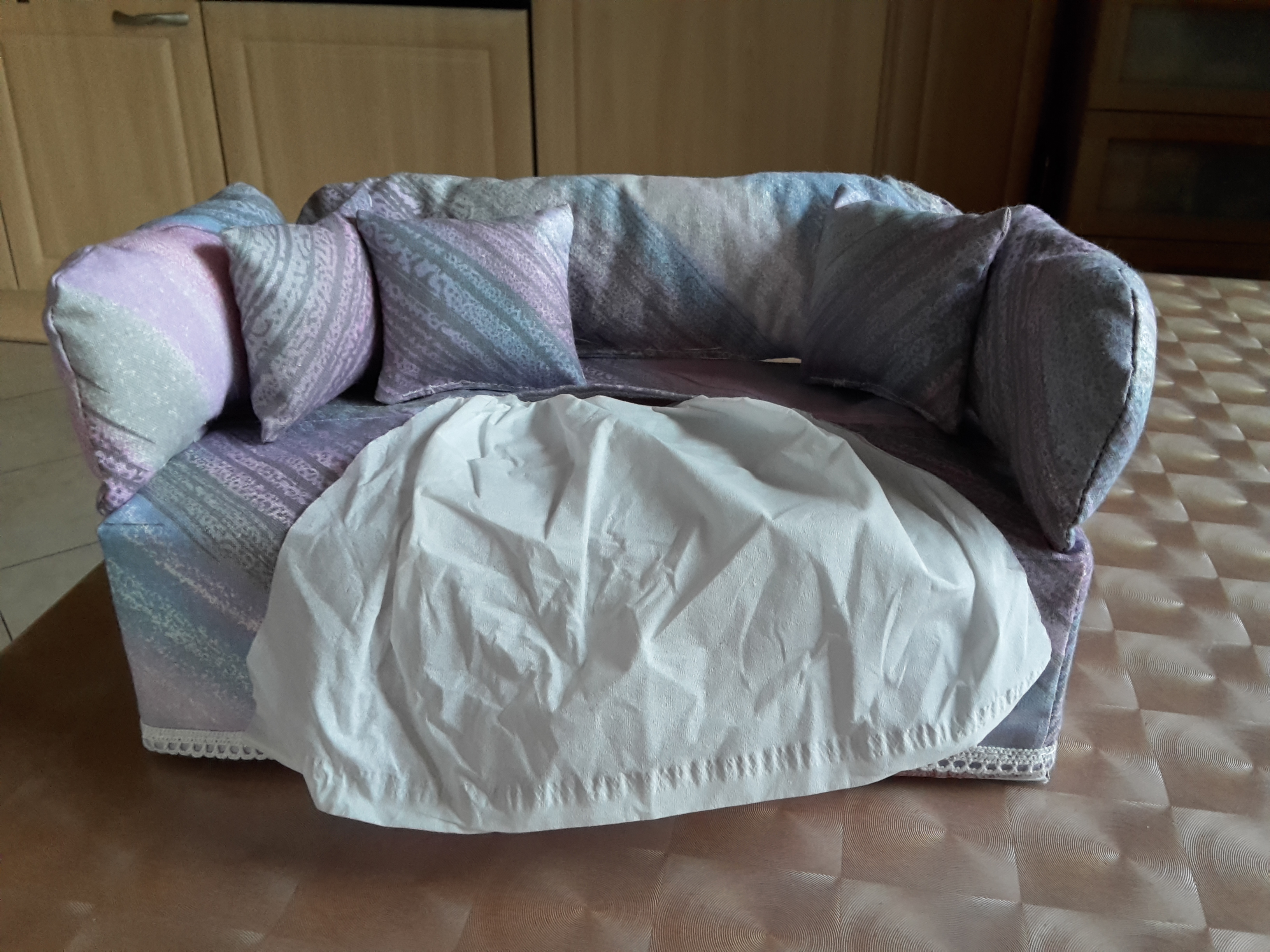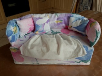 Deko Sofa Überzug für eine Kosmetiktücher Box. Der Überzug kann über handelsübliche Kosmetiktücher Boxen oder Taschentücher Boxen (mit den Maßen 23 l × 11,5 b × 7 h cm) gezogen werden.
