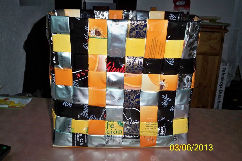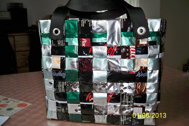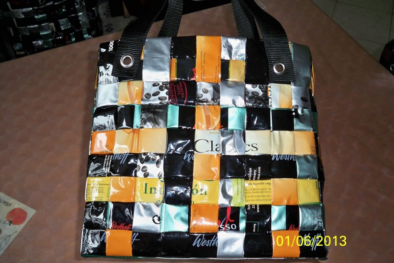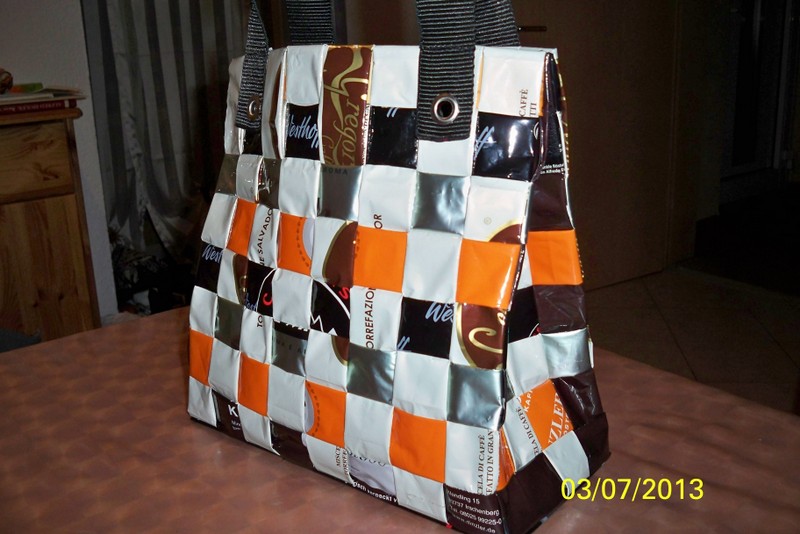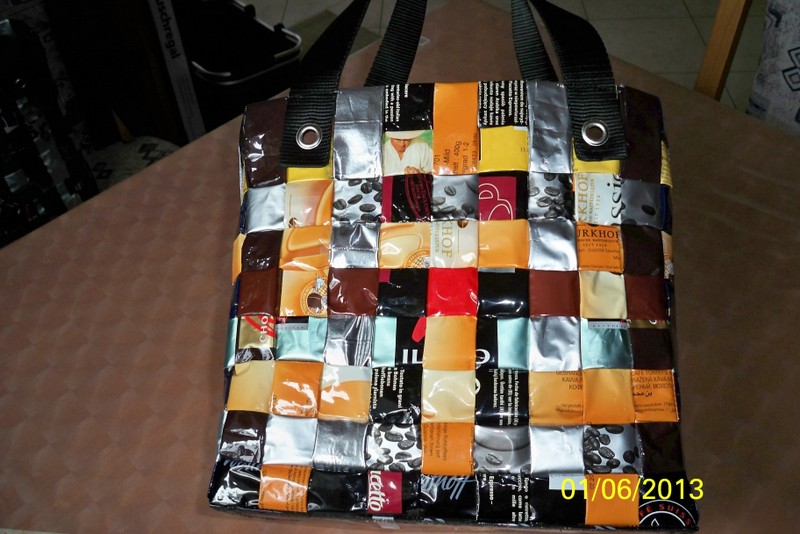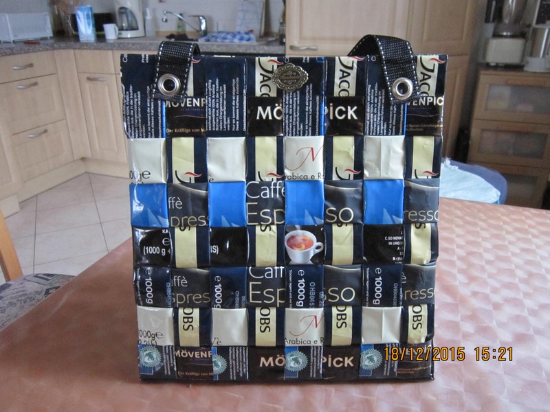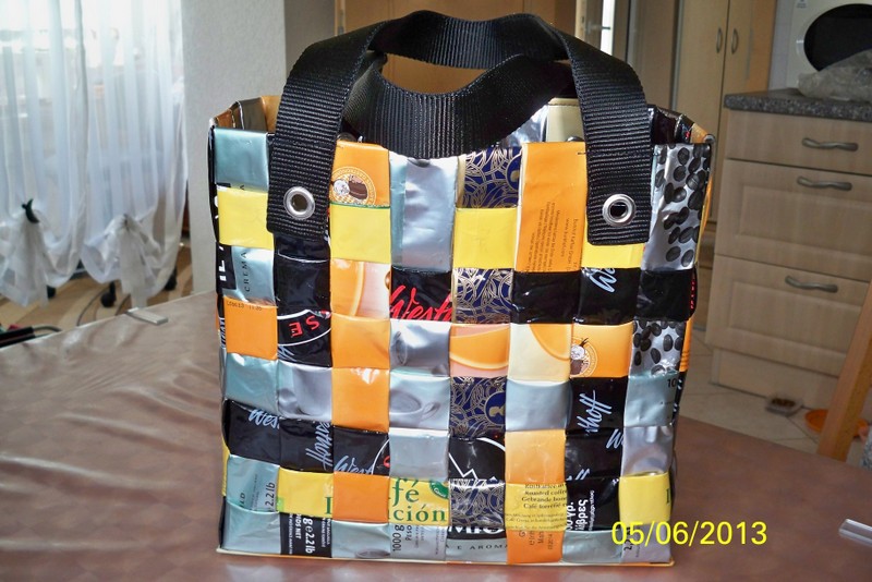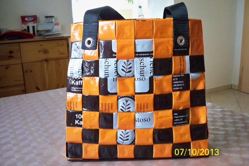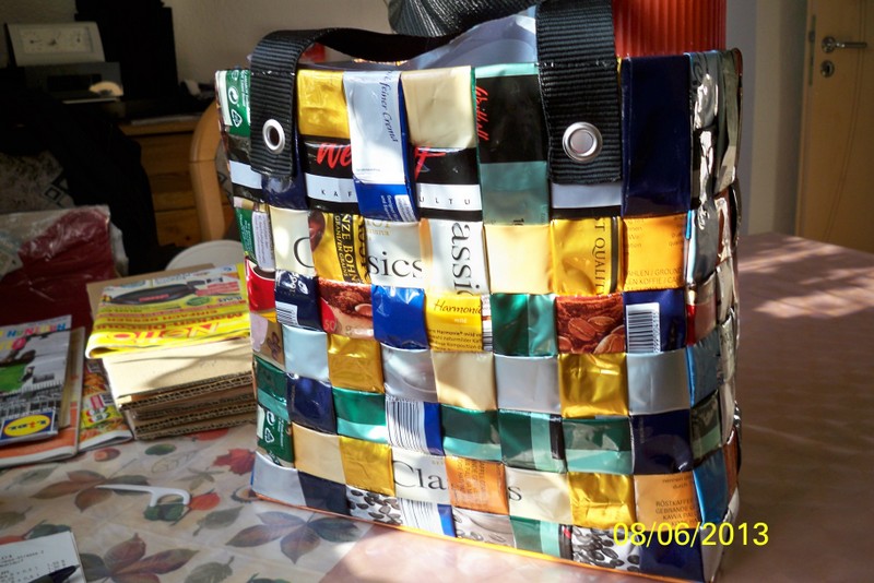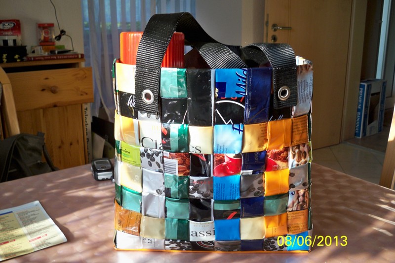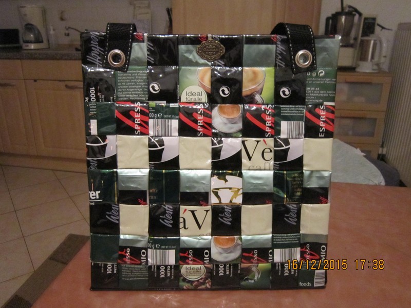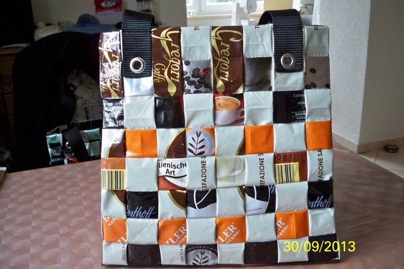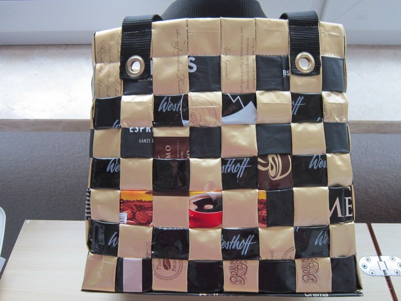 Die Ergebnisse sind fantastisch. Jedes Mal wenn ich so eine Tasche sehe, bin ich erstaunt, was man aus alten Kaffeepäckchen machen kann.
