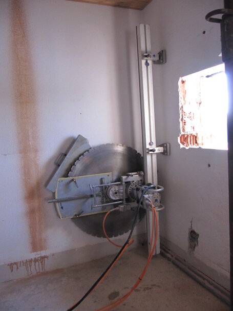 Als sie das 1. Mal angerückt sind, haben sie die dicke Mauer und einige Schnitte für die neuen Fenster und die Balkontüre gemacht.